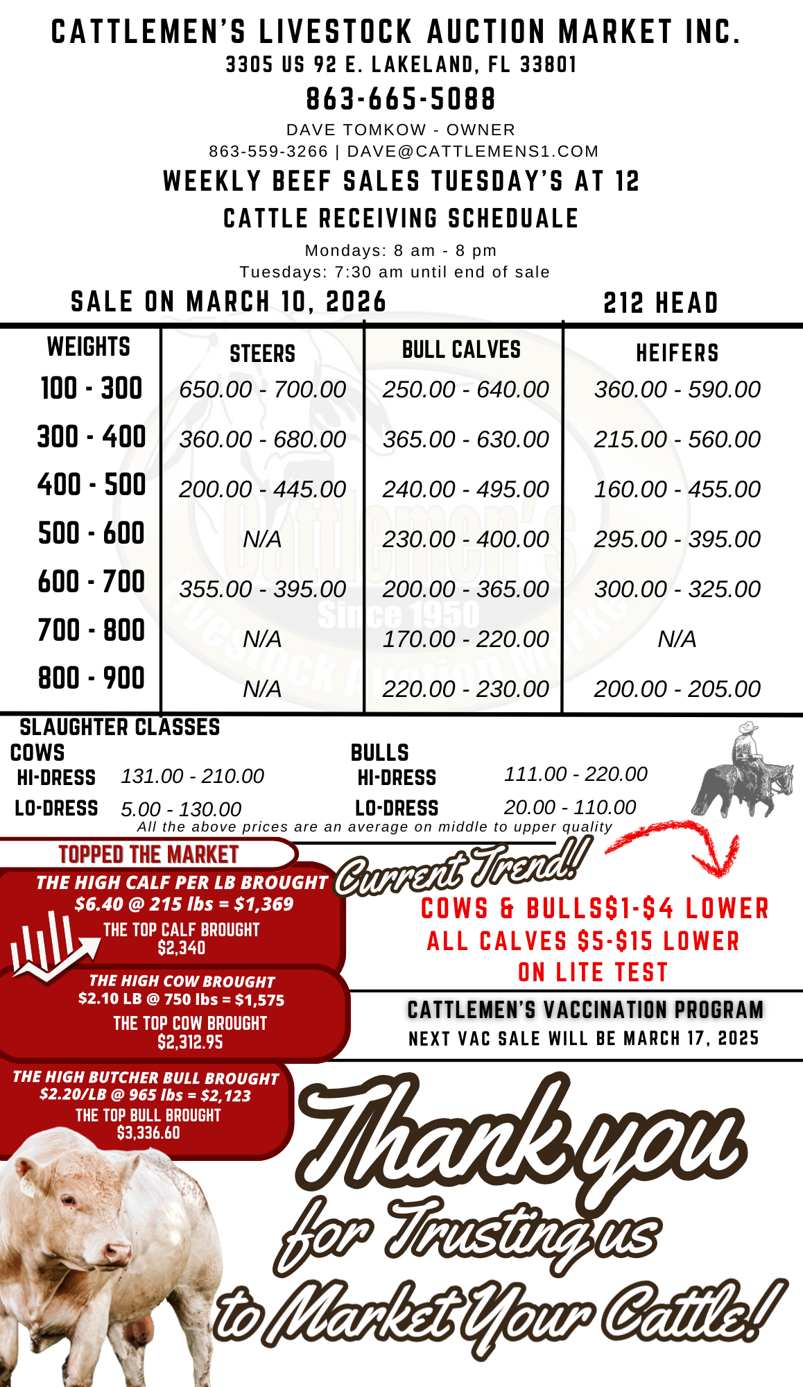 As always, we thank our buyers and sellers for trusting us with your cattle. If you ever see anything we can improve, let us know. We can’t fix it if we don’t know it’s broken