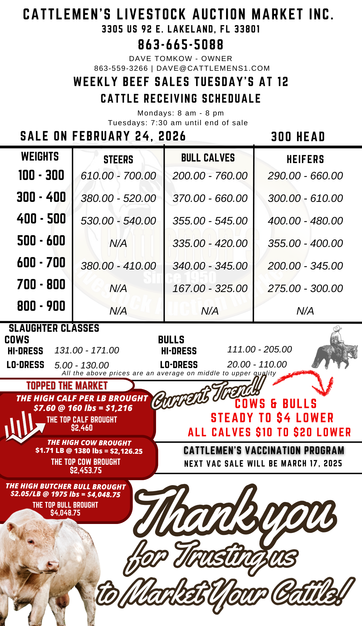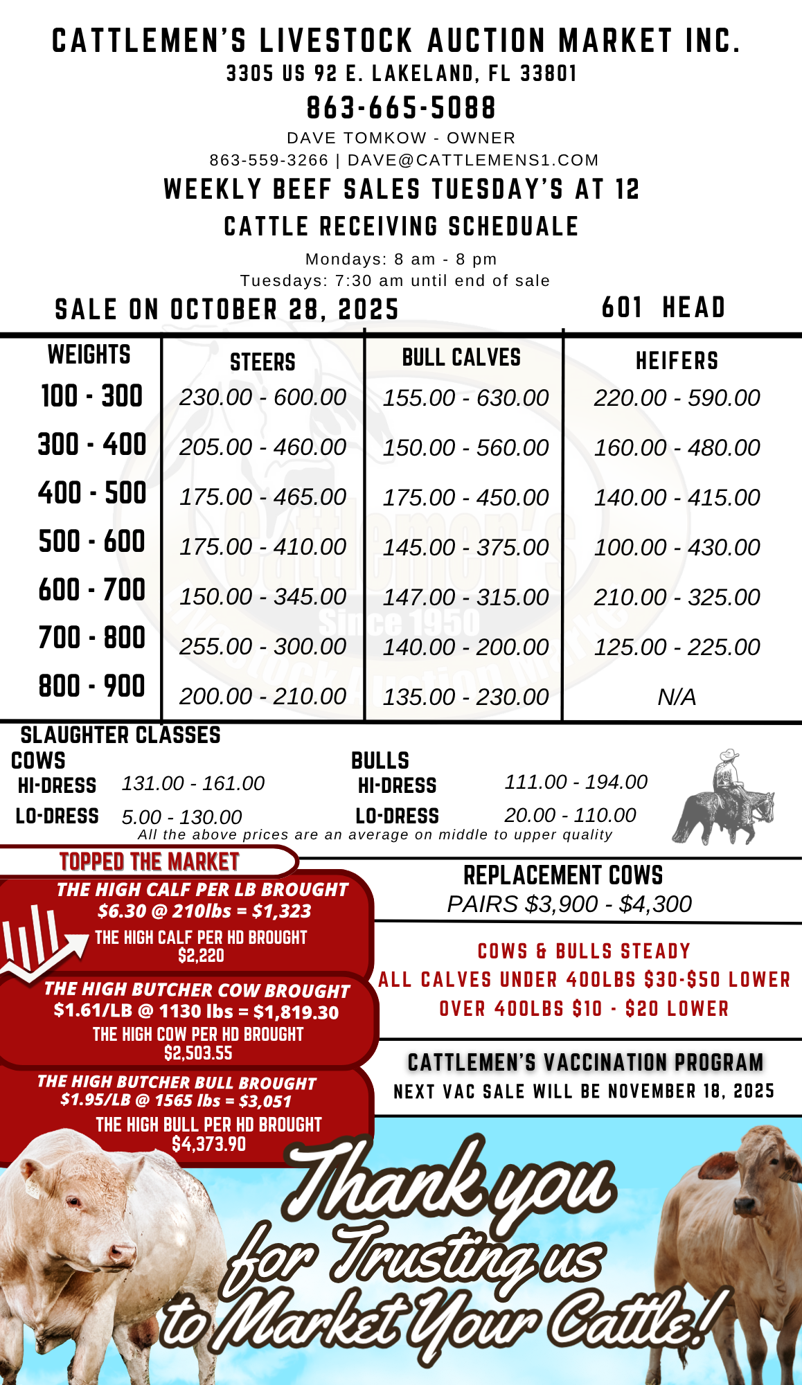 Thank you for Trusting our family to market your cattle! - Dave Tomkow