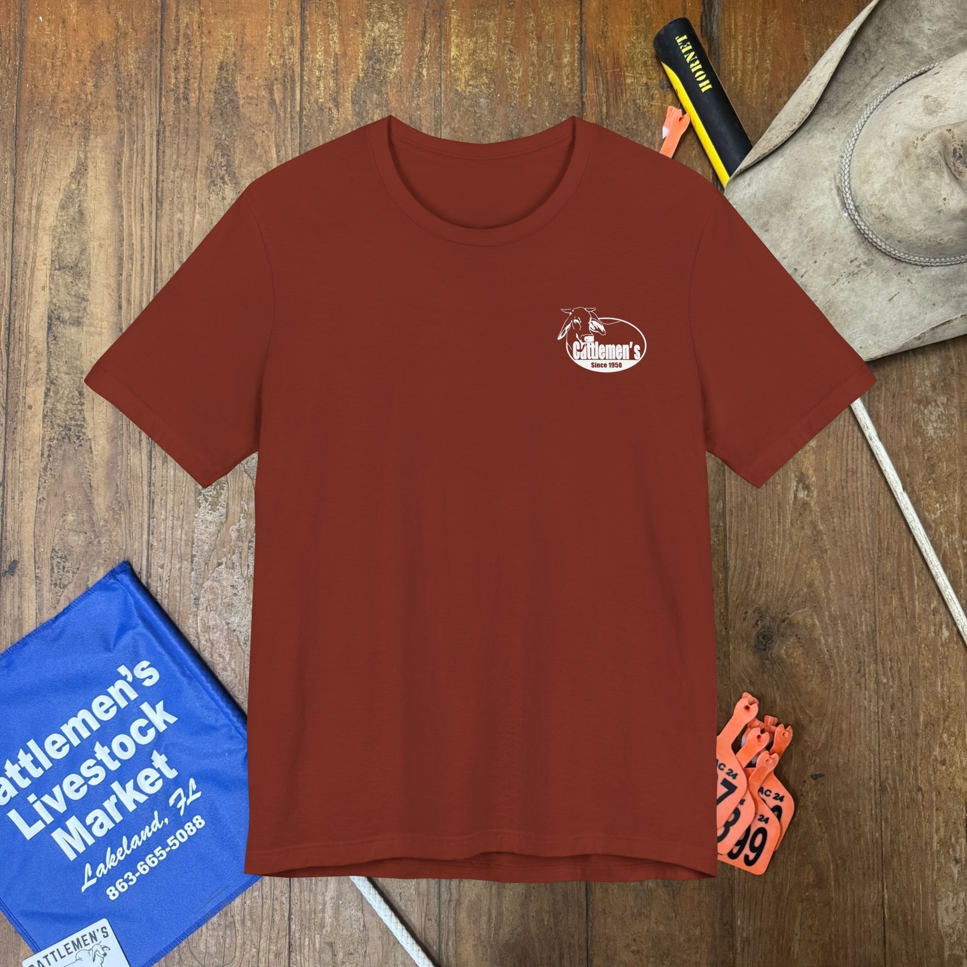 This Cattlemen’s Livestock Auction tee is built for the ones who rise with the sun and stay until the last gate’s shut. Featuring our bold logo front and center, it’s a tribute to the grit, tradition, and community behind every head sold at the Lakeland market. Soft, breathable, and ranch-ready—wear it to the barn, the auction, or out on the town.